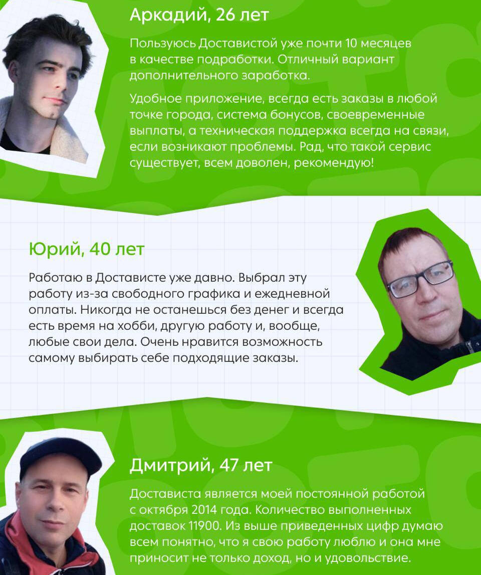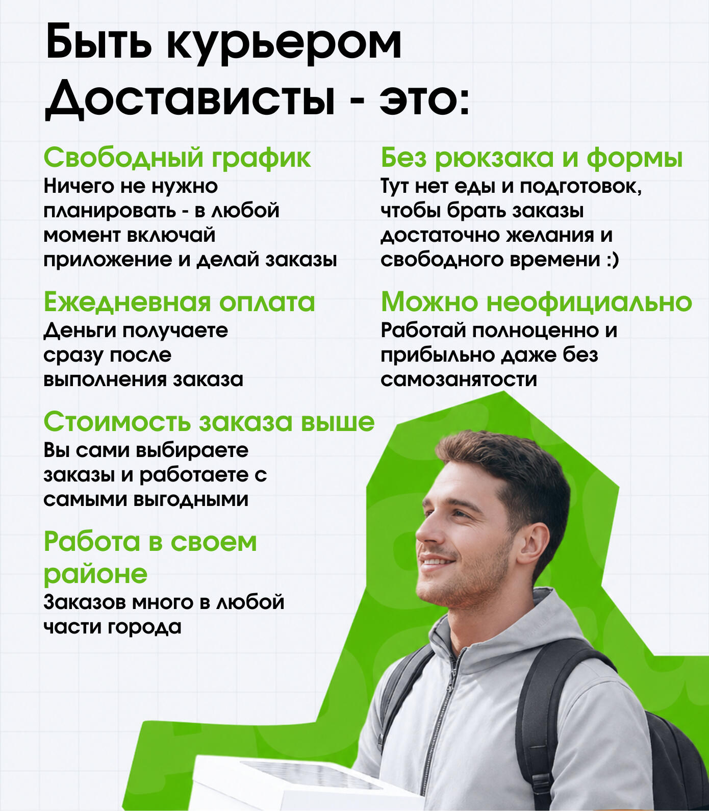 Доход зависит от спроса, расстояния и типа заказов - вы сами выбираете только выгодные. Сразу видите оплату и берёте те заказы, которые подходят именно вам. Все суммы указаны чистыми для курьера: взяли заказ за 550 ₽ - получили 550 ₽ без удержаний. В среднем курьеры зарабатывают от 6000 ₽ в день за 8-10 часов.