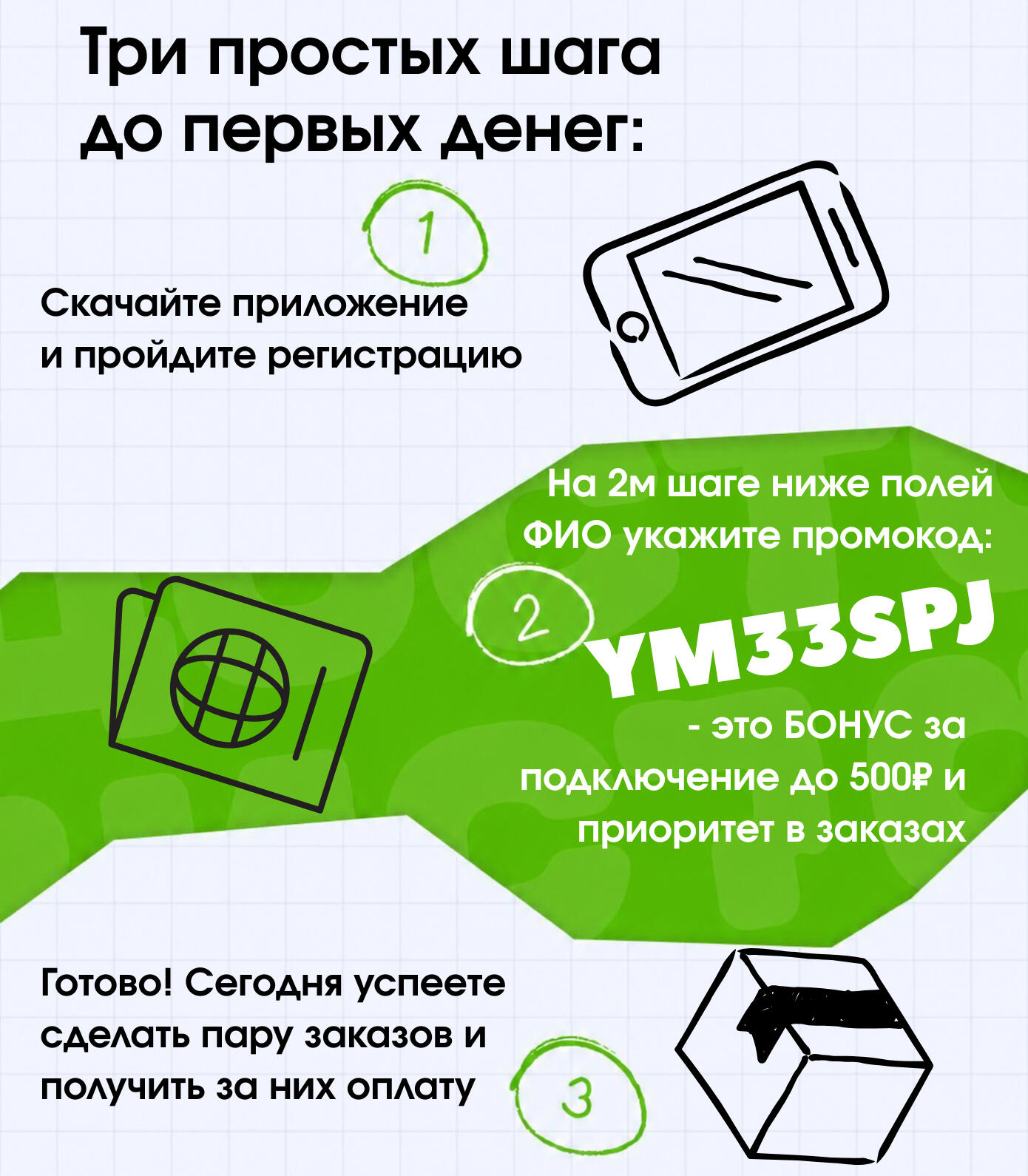 Нефиксированный бонус - до 500 ₽. Главное преимущество: персональный менеджер для новичков с промокодом - поможет быстро разобраться и начать. И доступ к заказам с оплатой по карте без самозанятости.